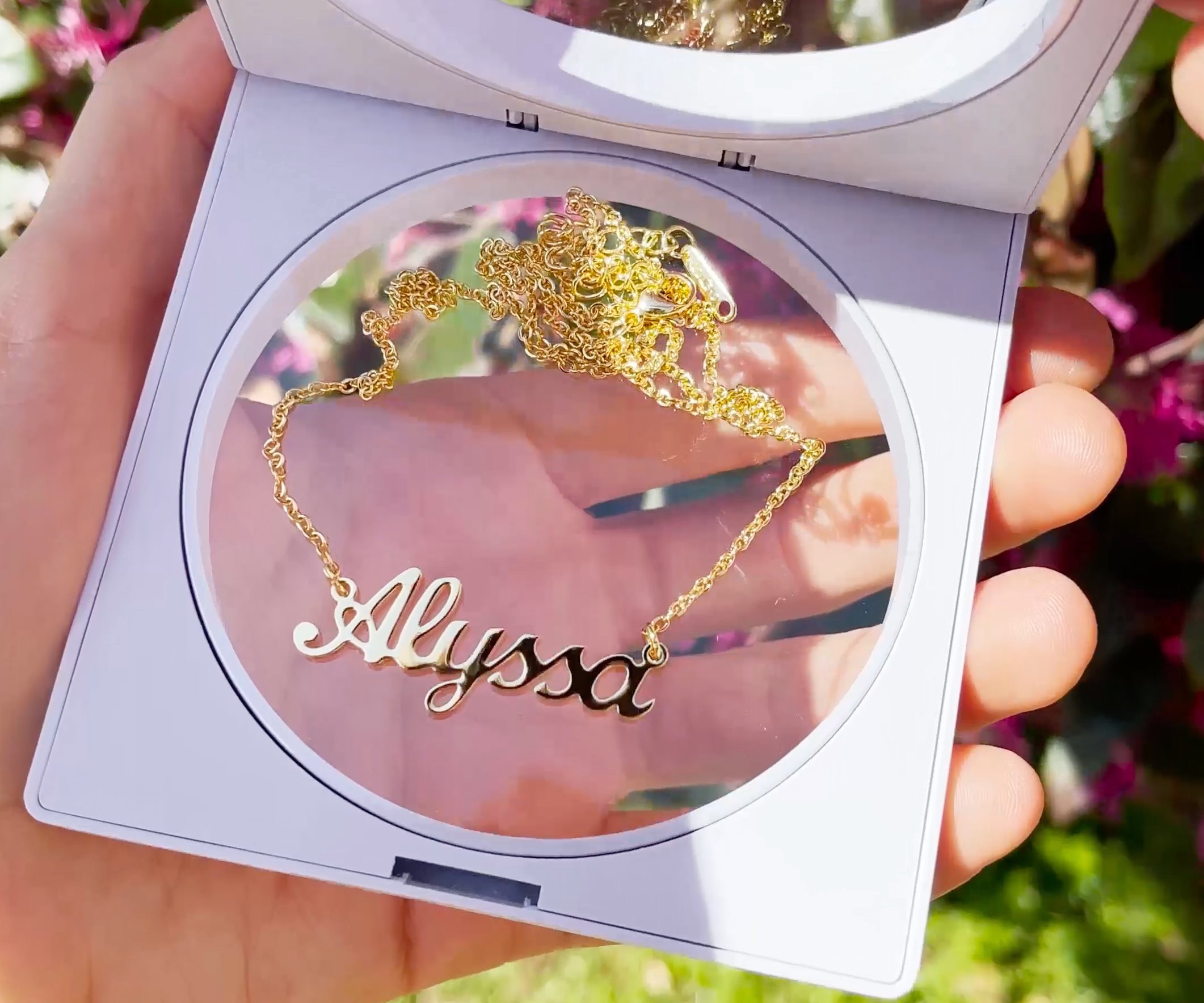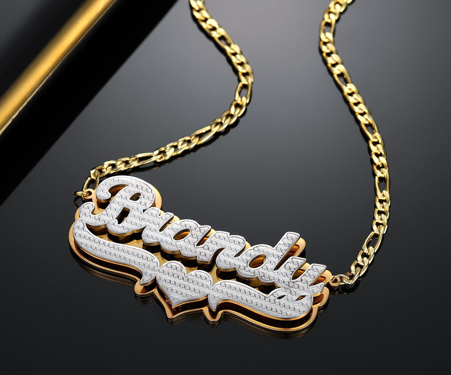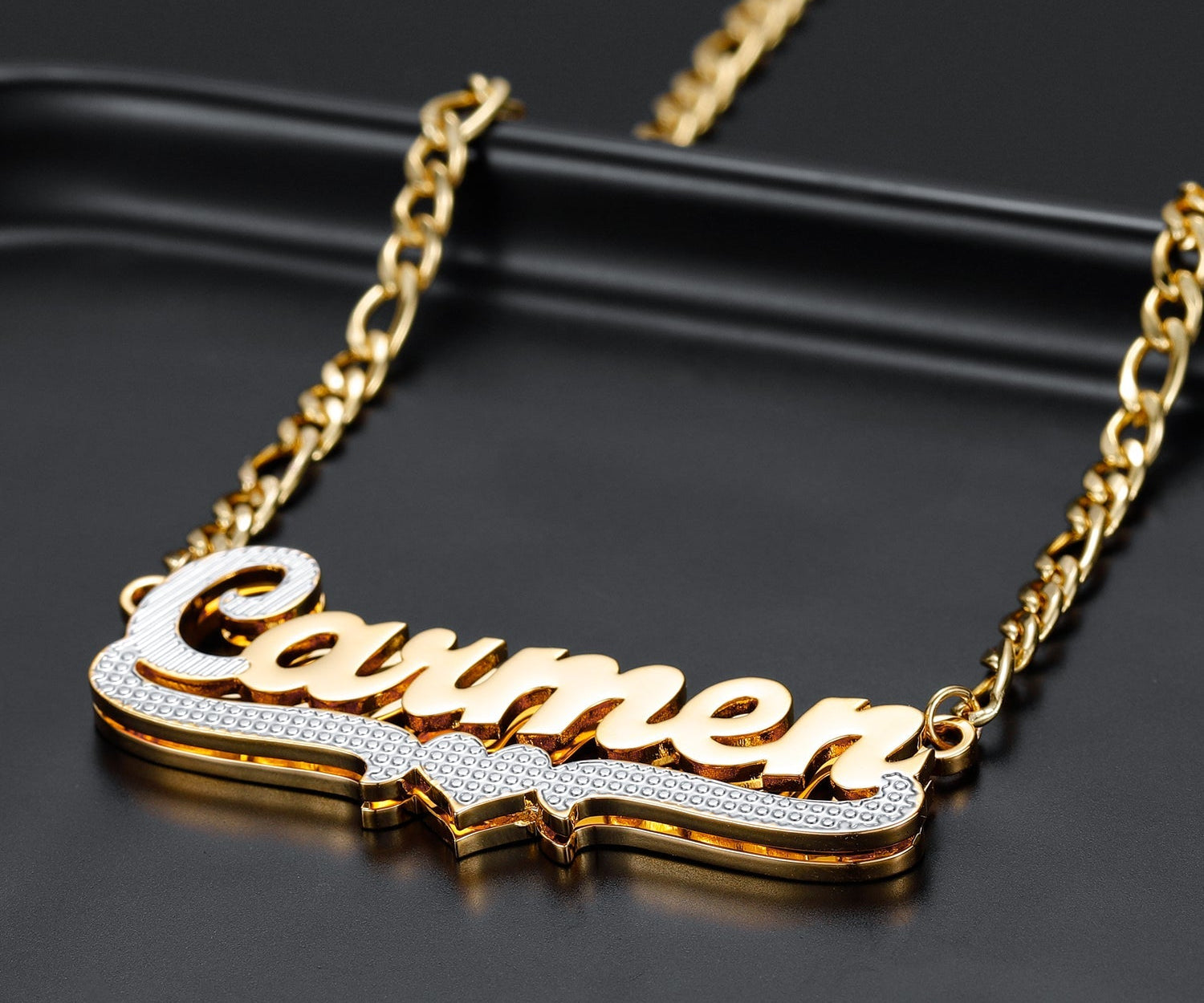 Kids Double Plated Script Name Necklace w/ Figaro Chain