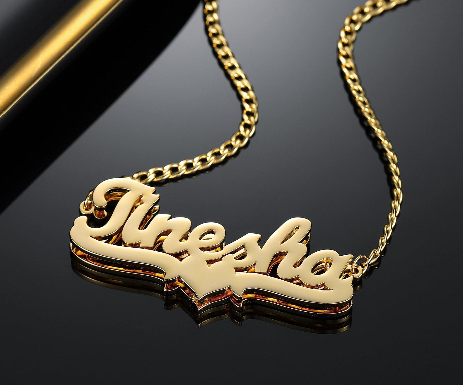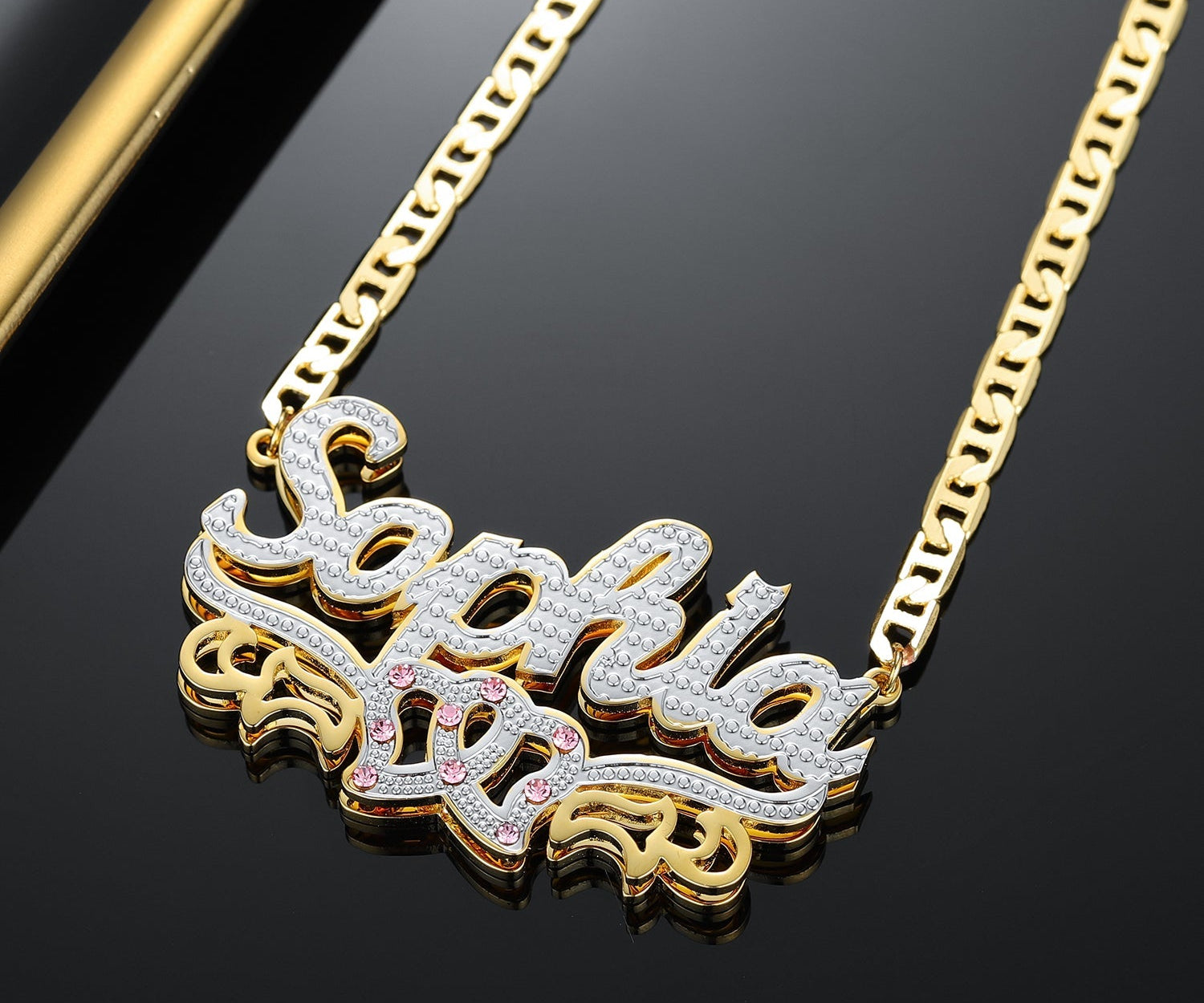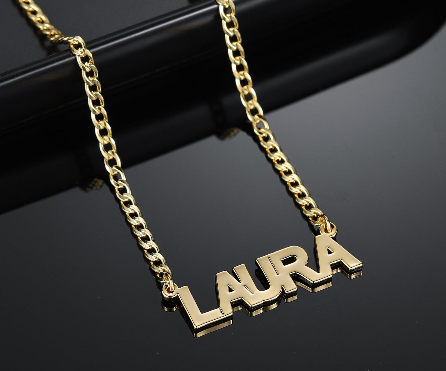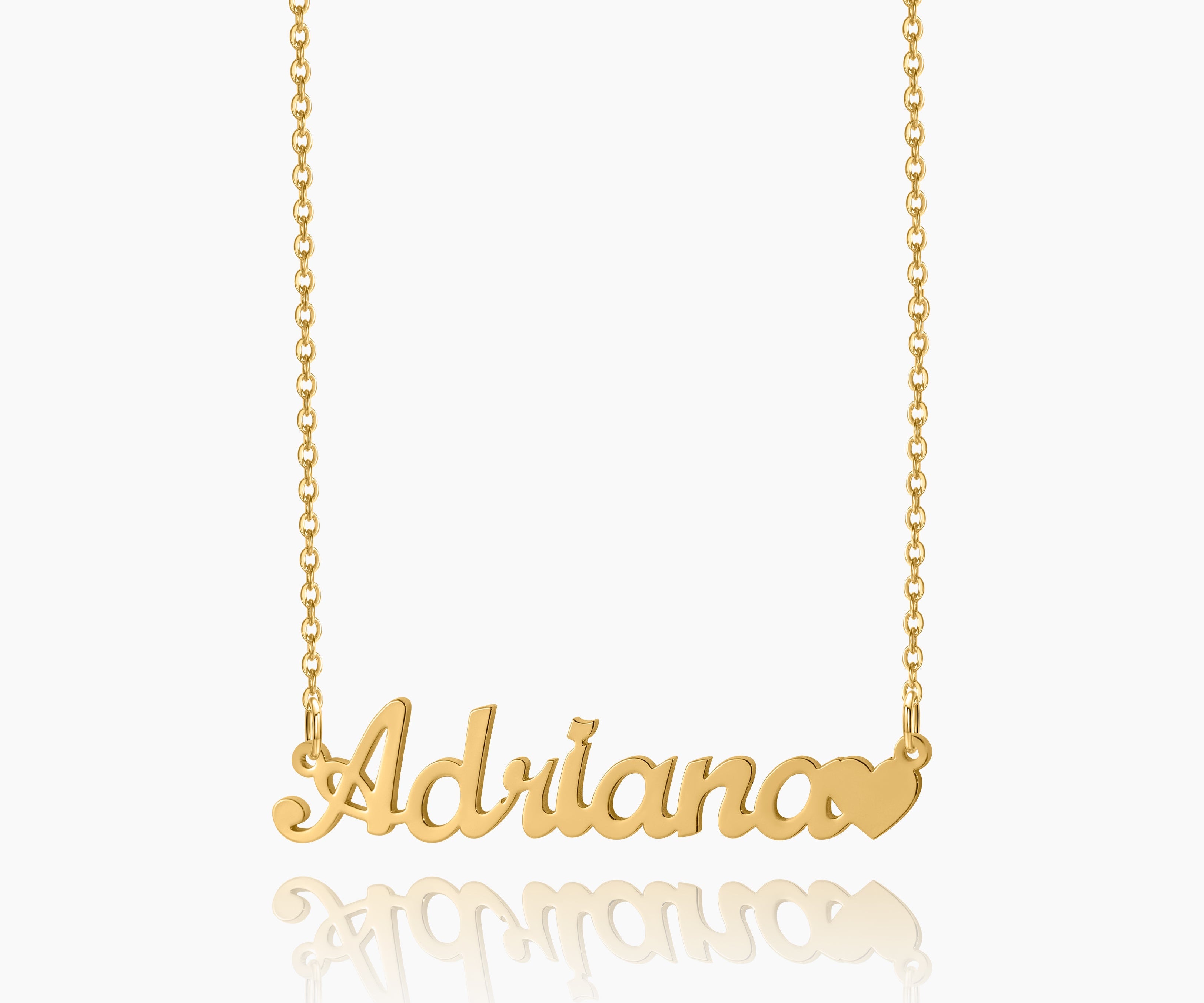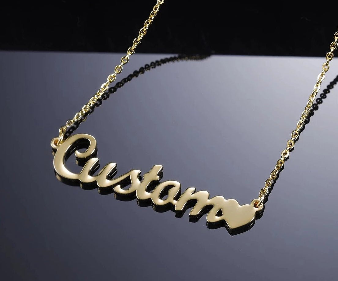 Kids Double Plated Heart Name Necklace w/ Cuban Chain