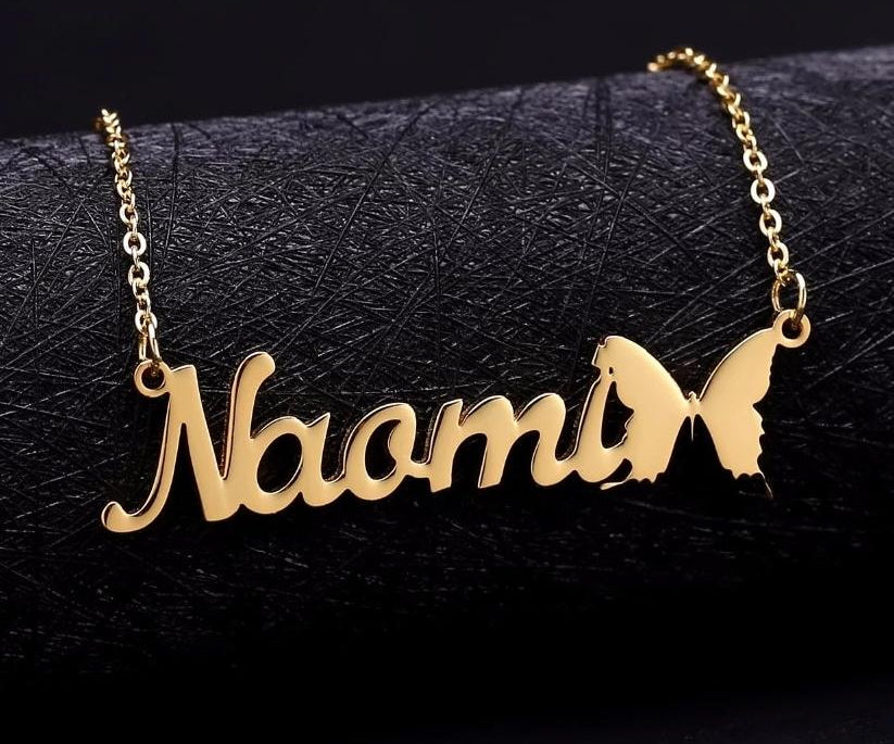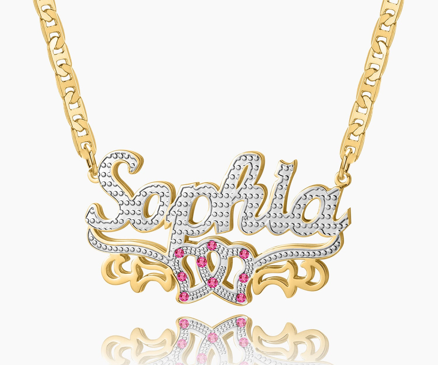 Kids Double Plated Double Heart Name Necklace w/ Clip Chain