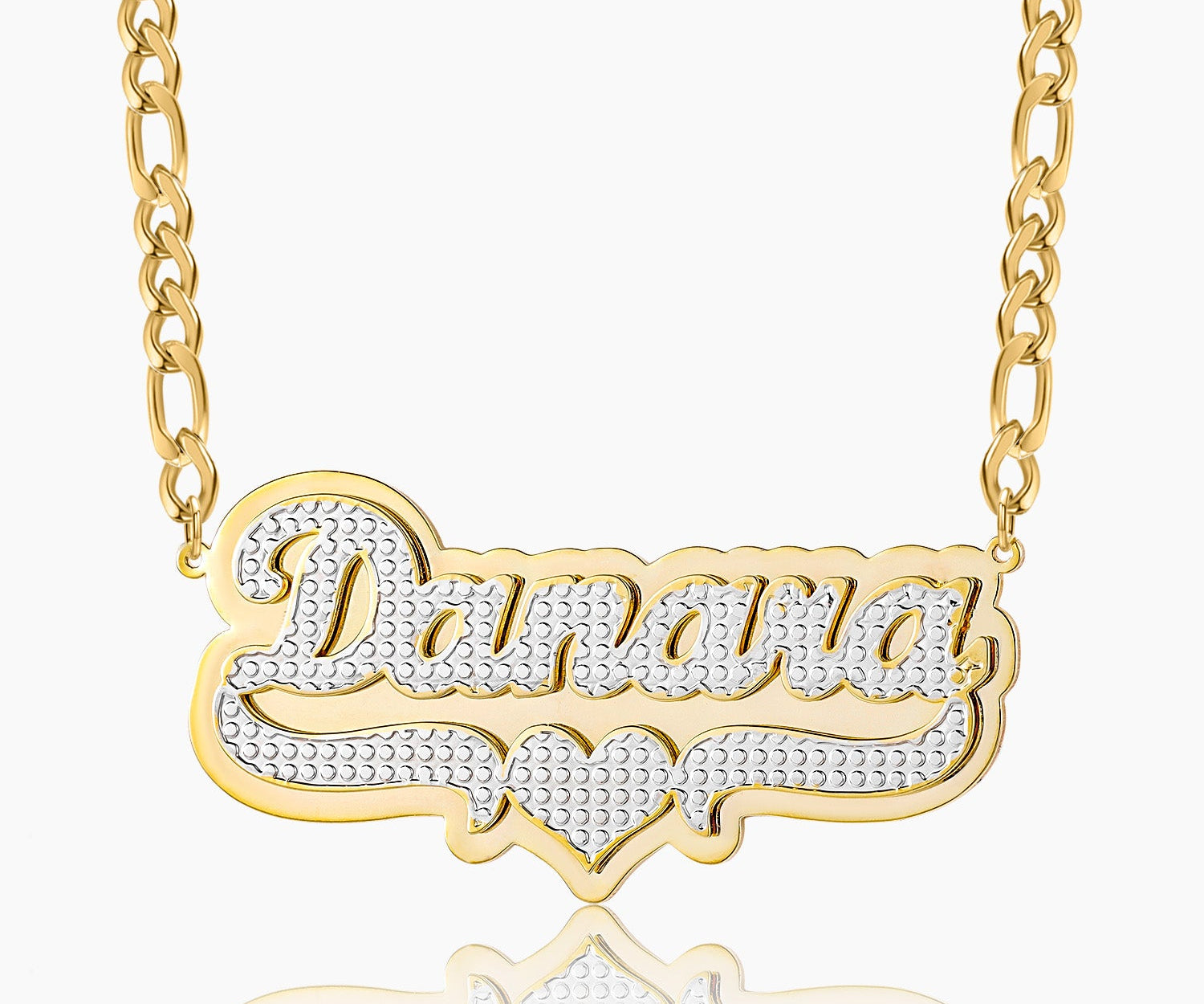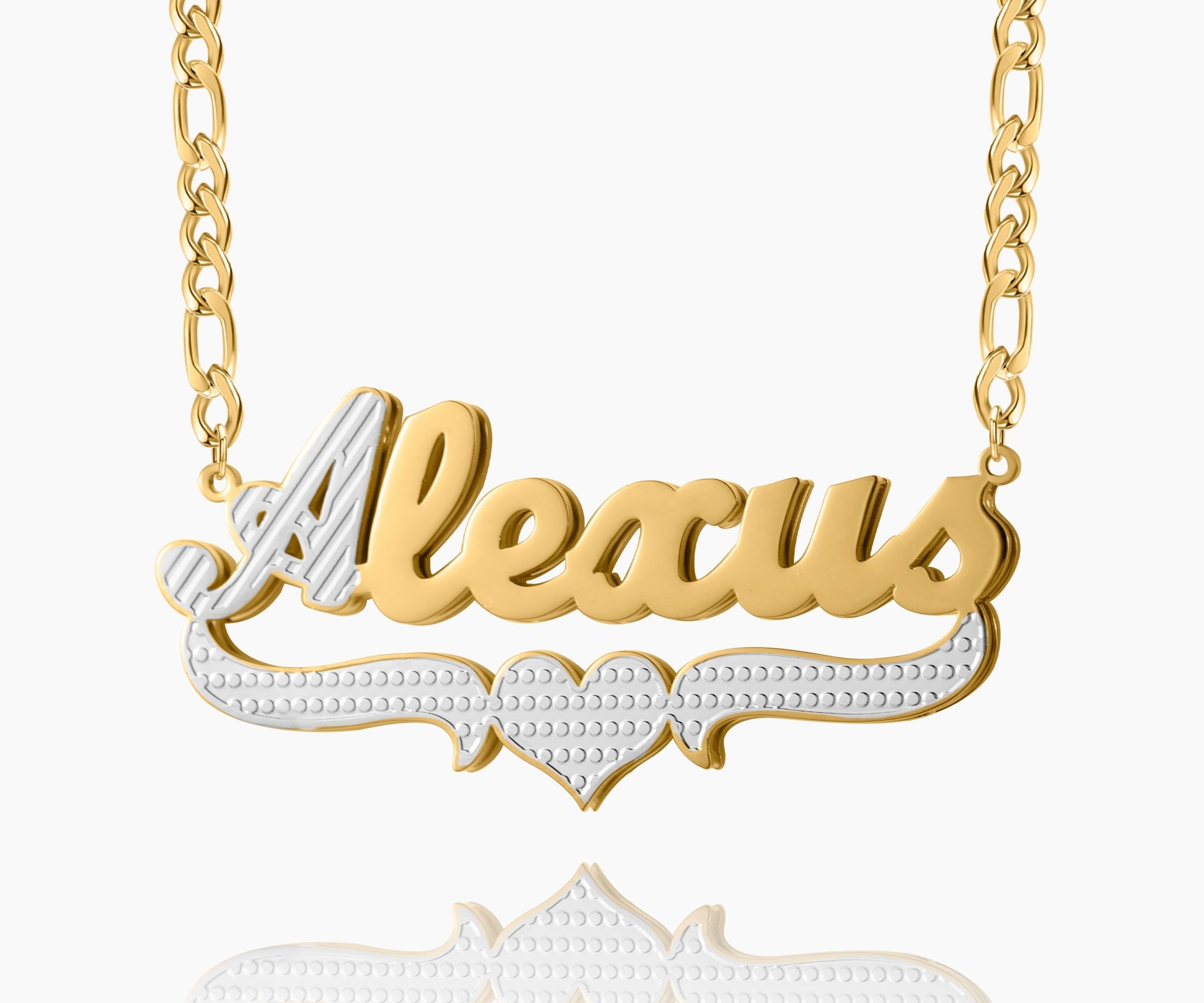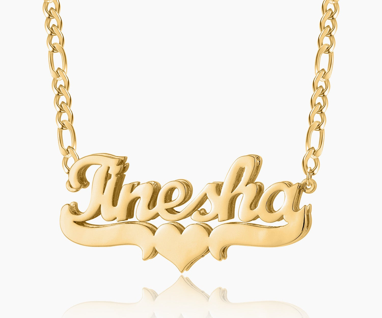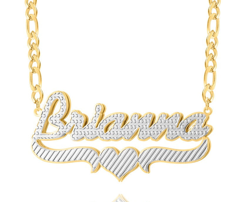 Kids Double Plated Hearts Name Necklace w/ Figaro Chain