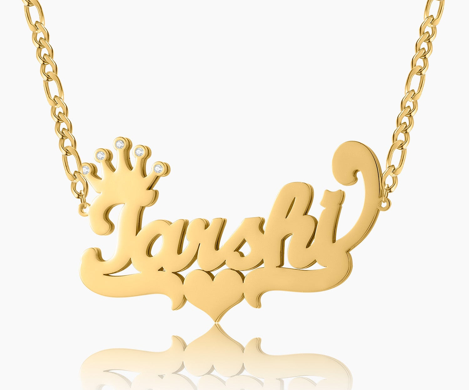 Kids Double Plated Crown Heart Name Necklace w/ Figaro Chain