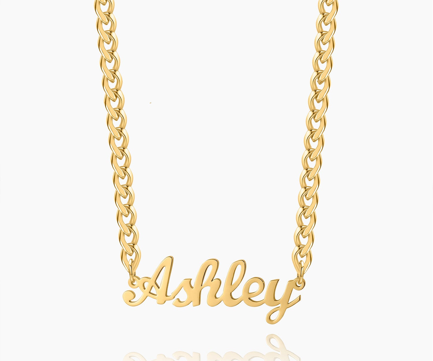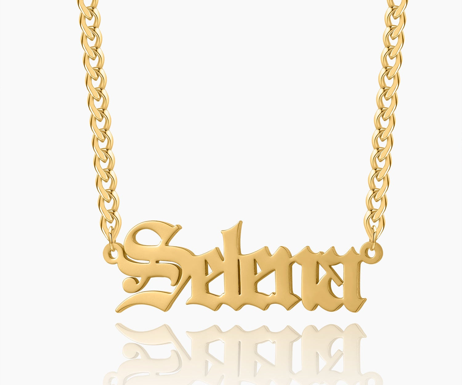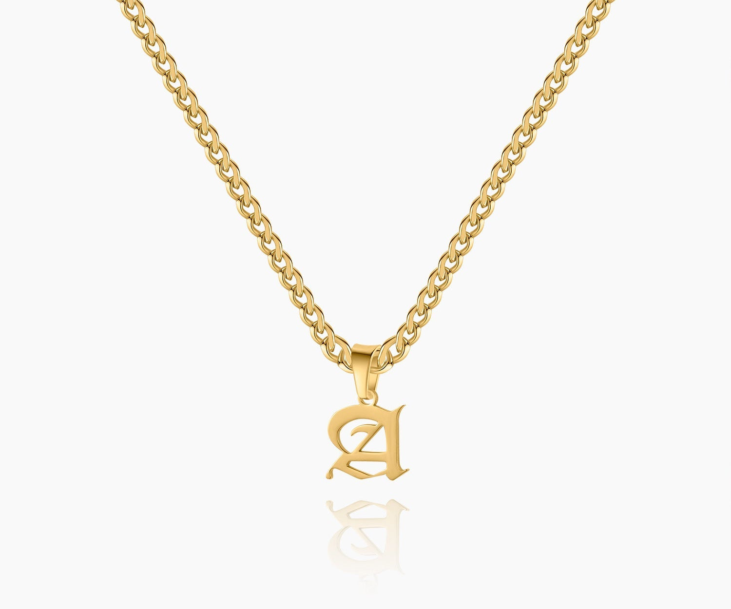 Kids Gothic Letter Necklace w/ Cuban Chain