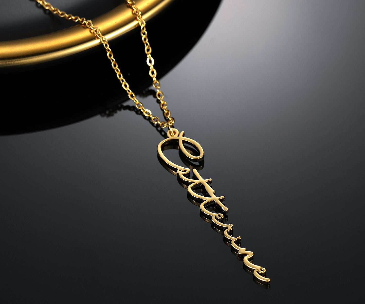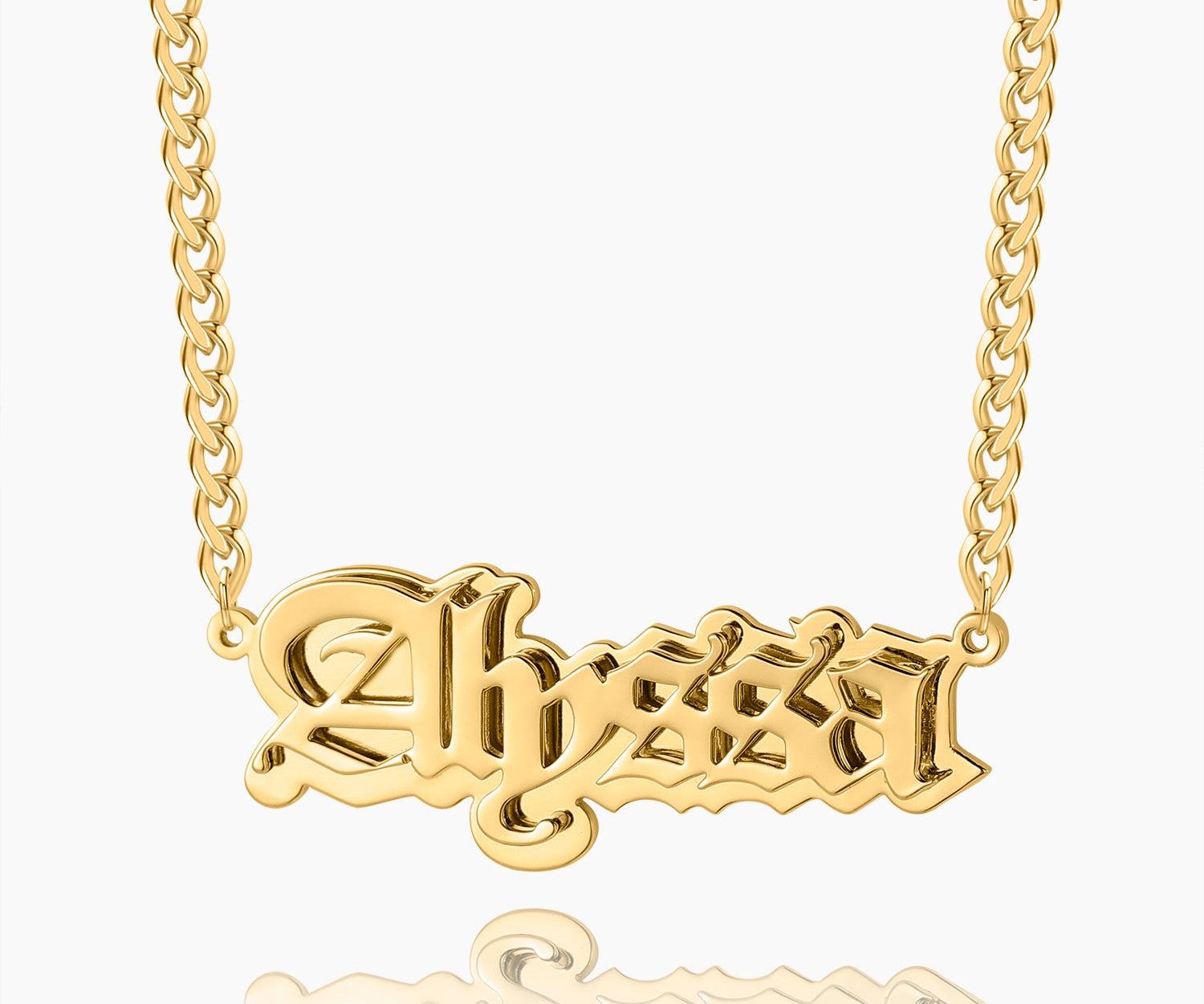 Double Plated Gothic Name Necklace w/ Figaro Chain