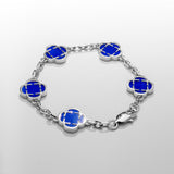 This bracelet features a series of our iconic 4-leaf clover motifs, each framed in silver and set with a deep blue inlay. Designed to replicate the depth and richness of natural Lapis, its surface is sealed with a durable, scratch and fade-resistant finish. Beveled oval links ensure a comfortable fit on the wrist, while our snap-proof clasp ensures this piece is truly CRAFTD to last.