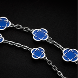 This necklace features a series of our iconic 4-leaf clover motifs, each framed in silver and set with a deep blue inlay. Designed to replicate the depth and richness of natural lapis, each clover is sealed with a durable, scratch and fade-resistant finish. Beveled links offer a seamless fit along the neckline, while our snap-proof clasp ensures this piece is truly CRAFTD to last.