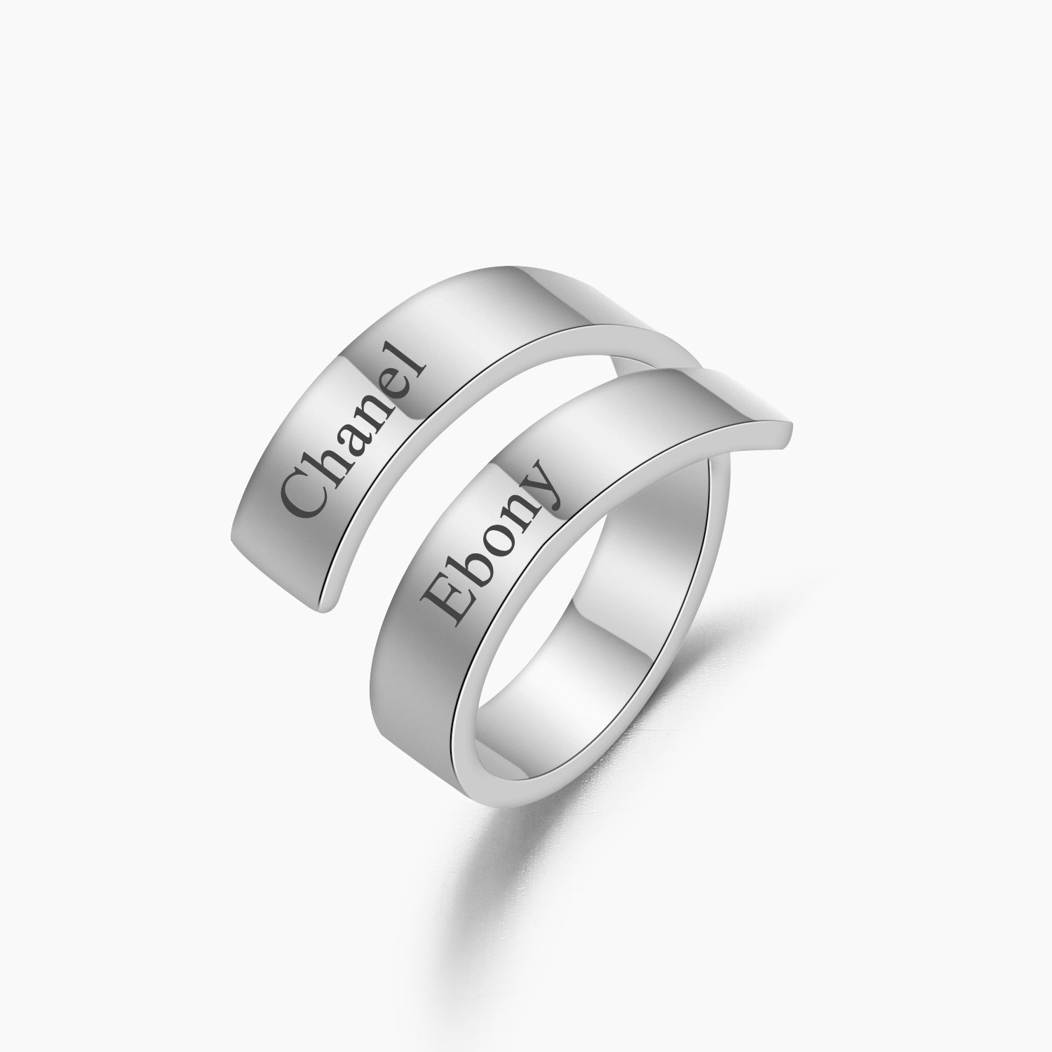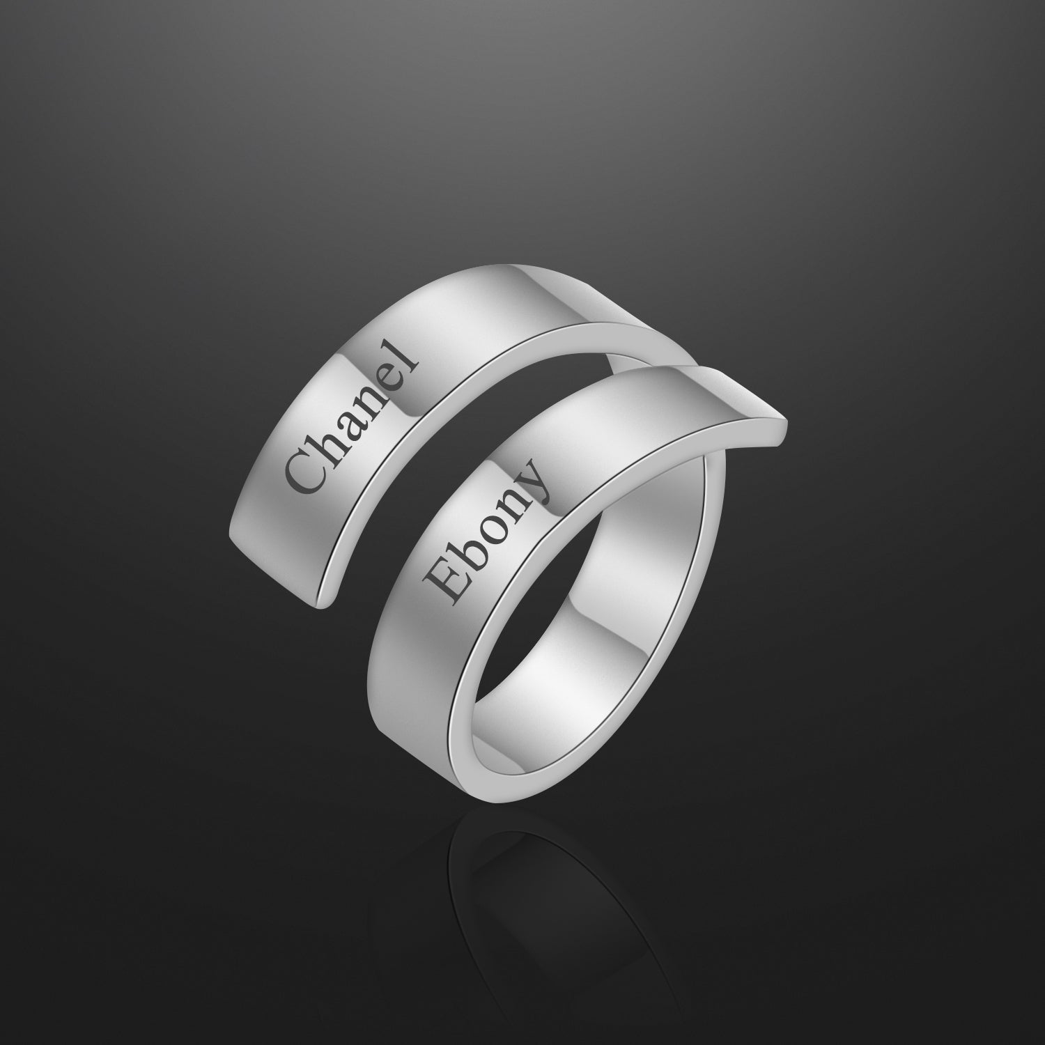 Personalize this ring with up to two names or a meaningful statement! The perfect gift for her. Crafted from Sterling Silver, this piece is made to last.