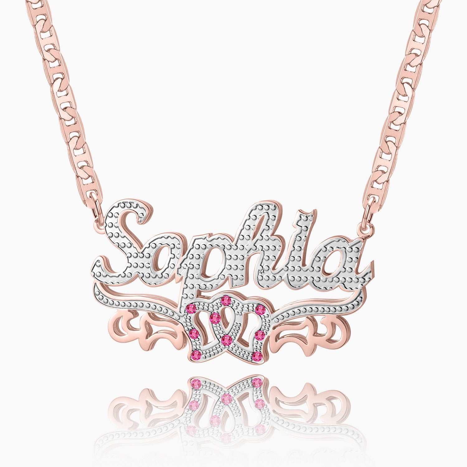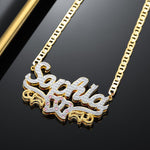 Double Plated Double Heart Name Necklace w/ Clip Chain
