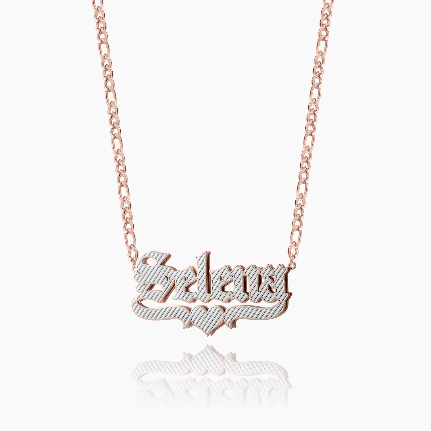 Double Plated Gothic Name Necklace w/ Figaro Chain