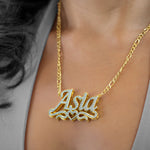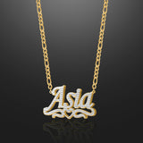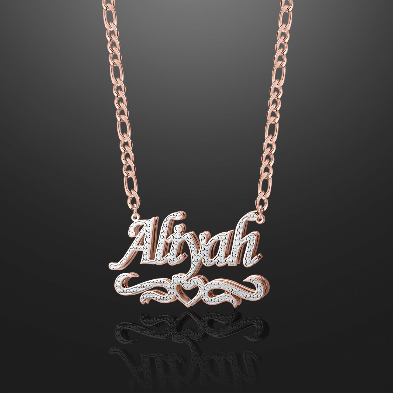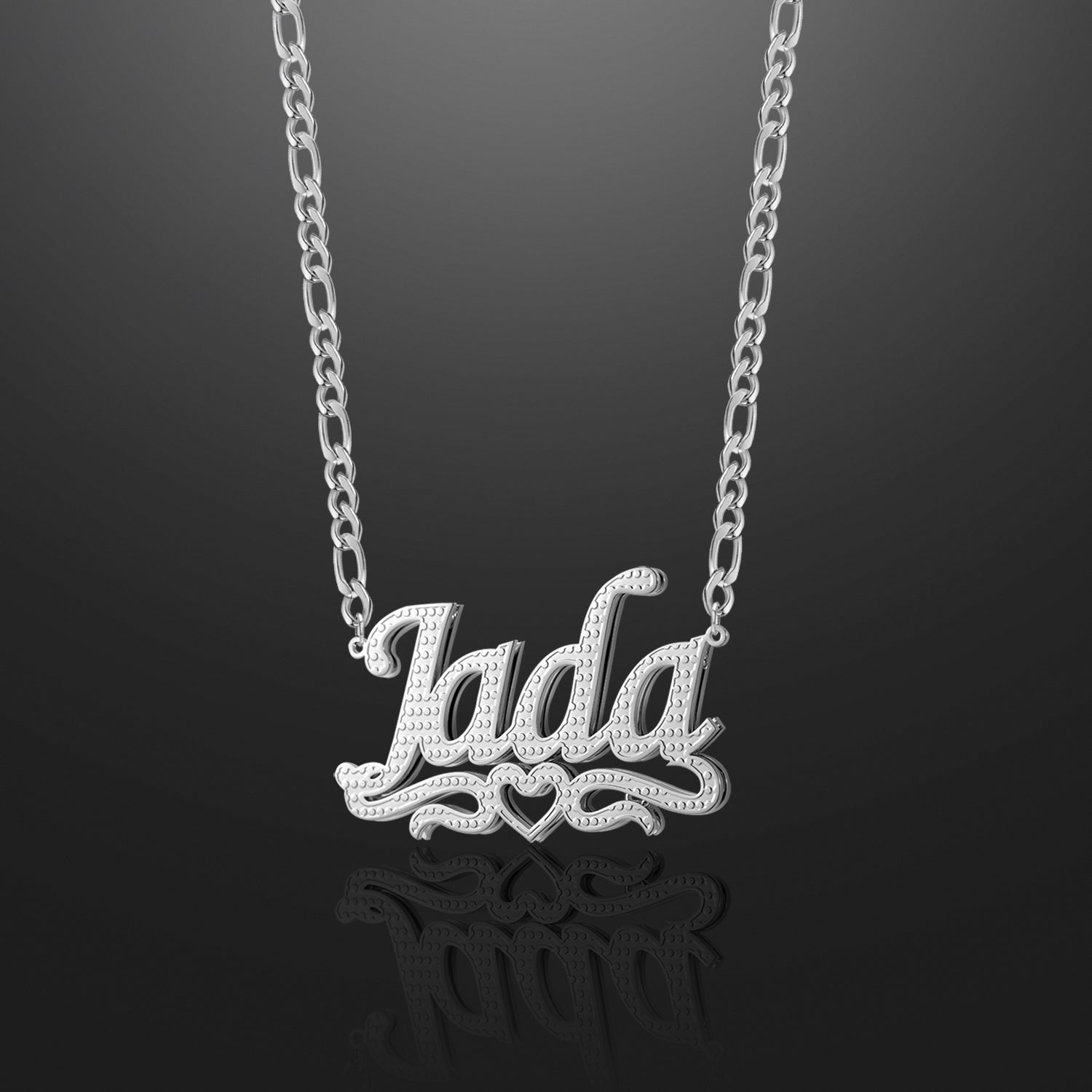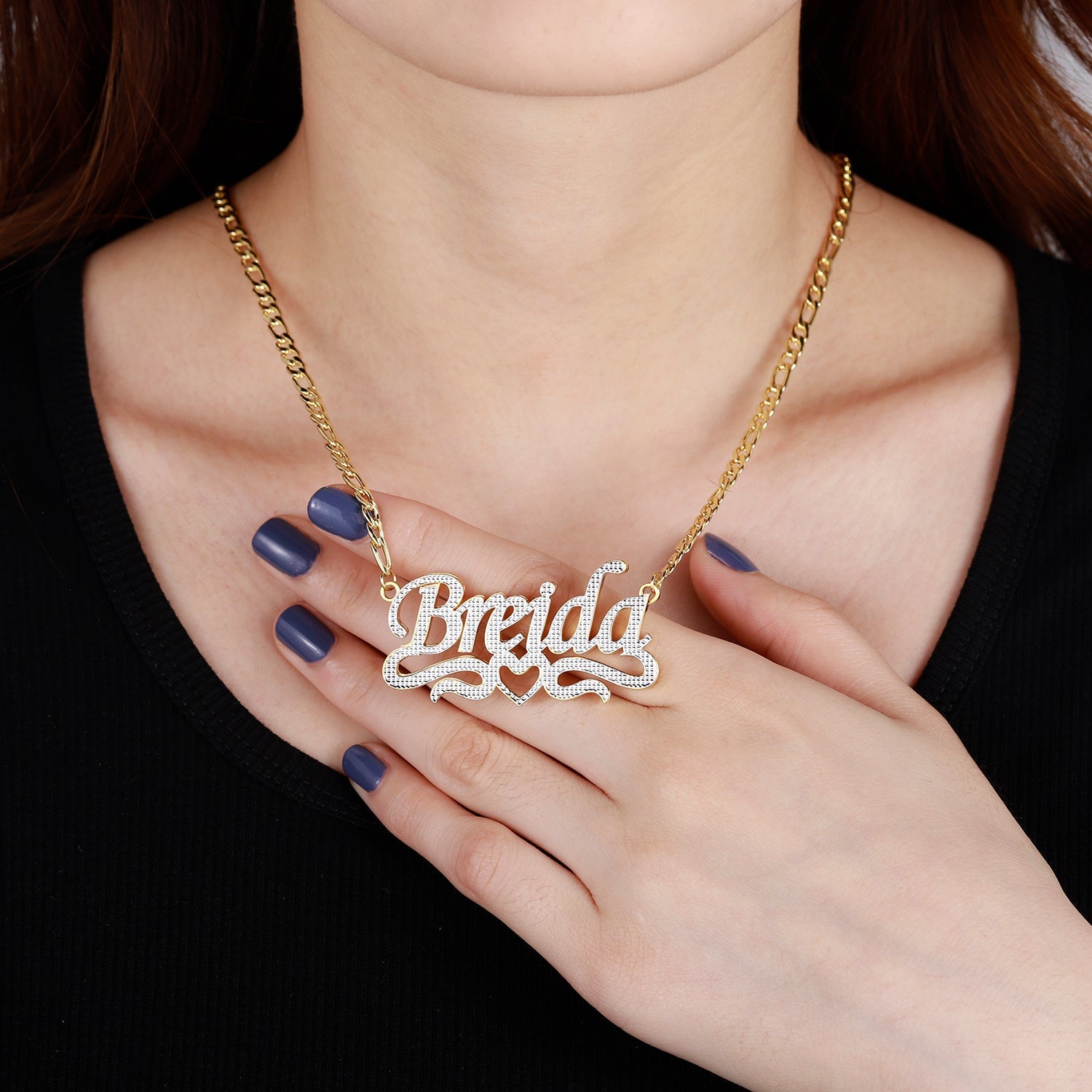Double Plated Heart Title Name Necklace w/ Figaro Chain
