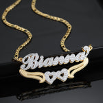 Double Plated Hearts Name Necklace w/ Figaro Chain
