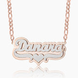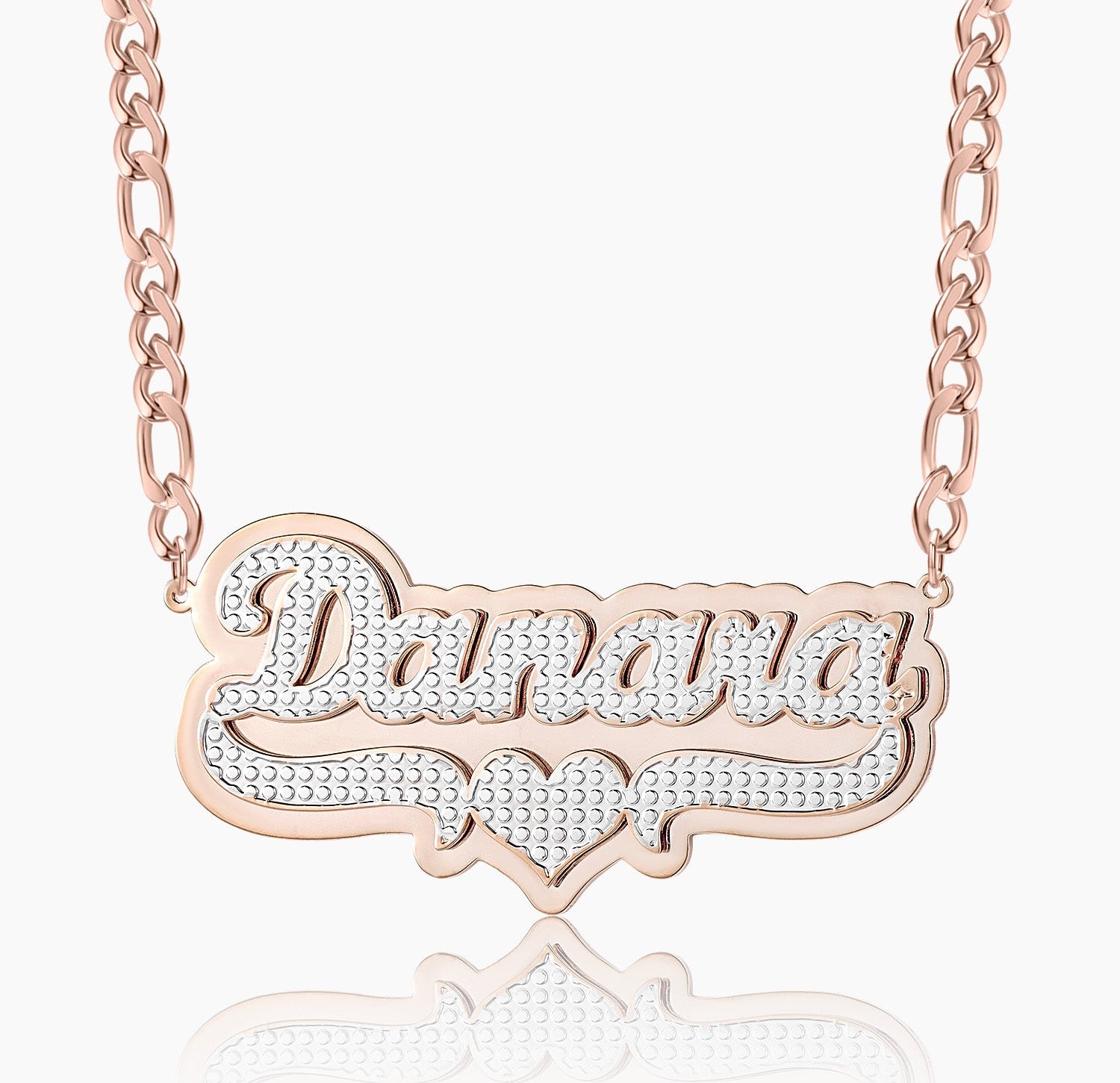 Double Plated Pop Out Heart Name Necklace w/ Figaro Chain