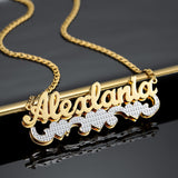 Double Plated Triple Heart Name Necklace w/ Cuban Chain