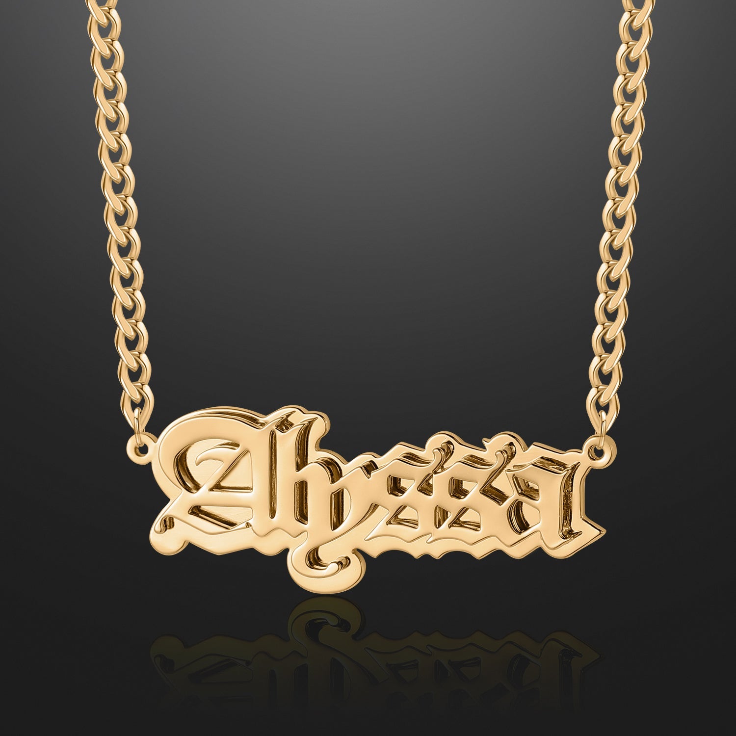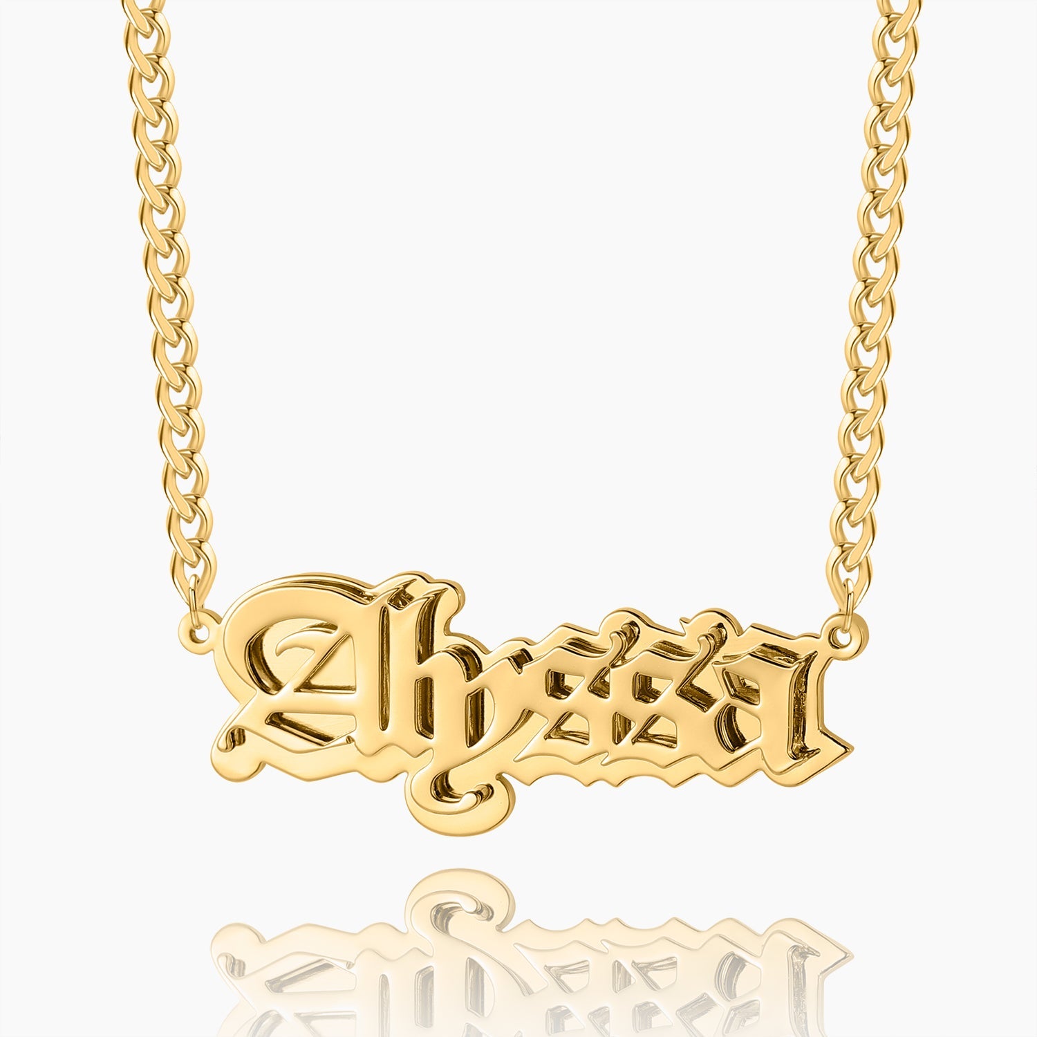 Gothic Outline Name Necklace w/ Cuban Chain