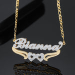 Kids Double Plated Hearts Name Necklace w/ Figaro Chain