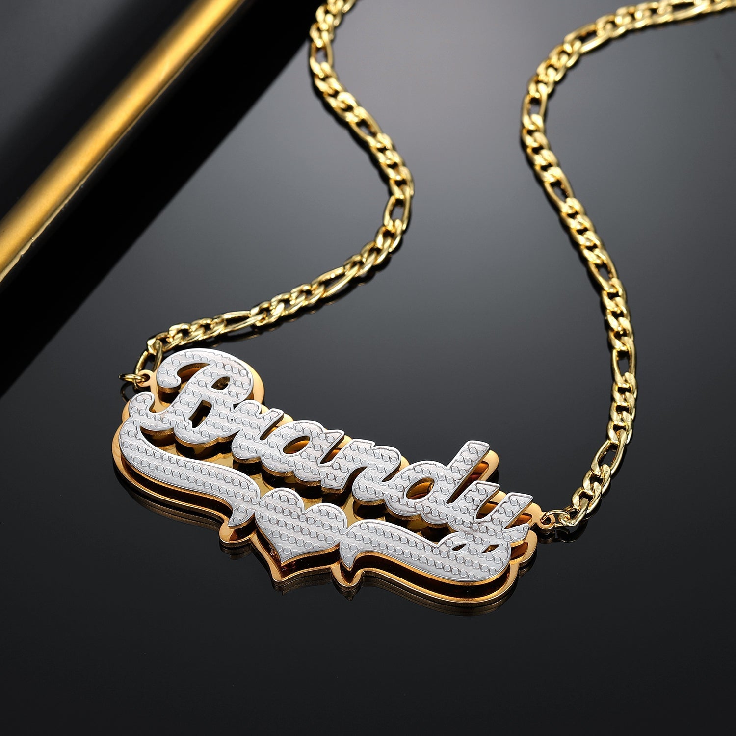 Dress your little ones with a nameplate necklace! Customize this necklace with a name or a meaningful word. Crafted from 18K gold and silver plating, this piece is durable and made to last.