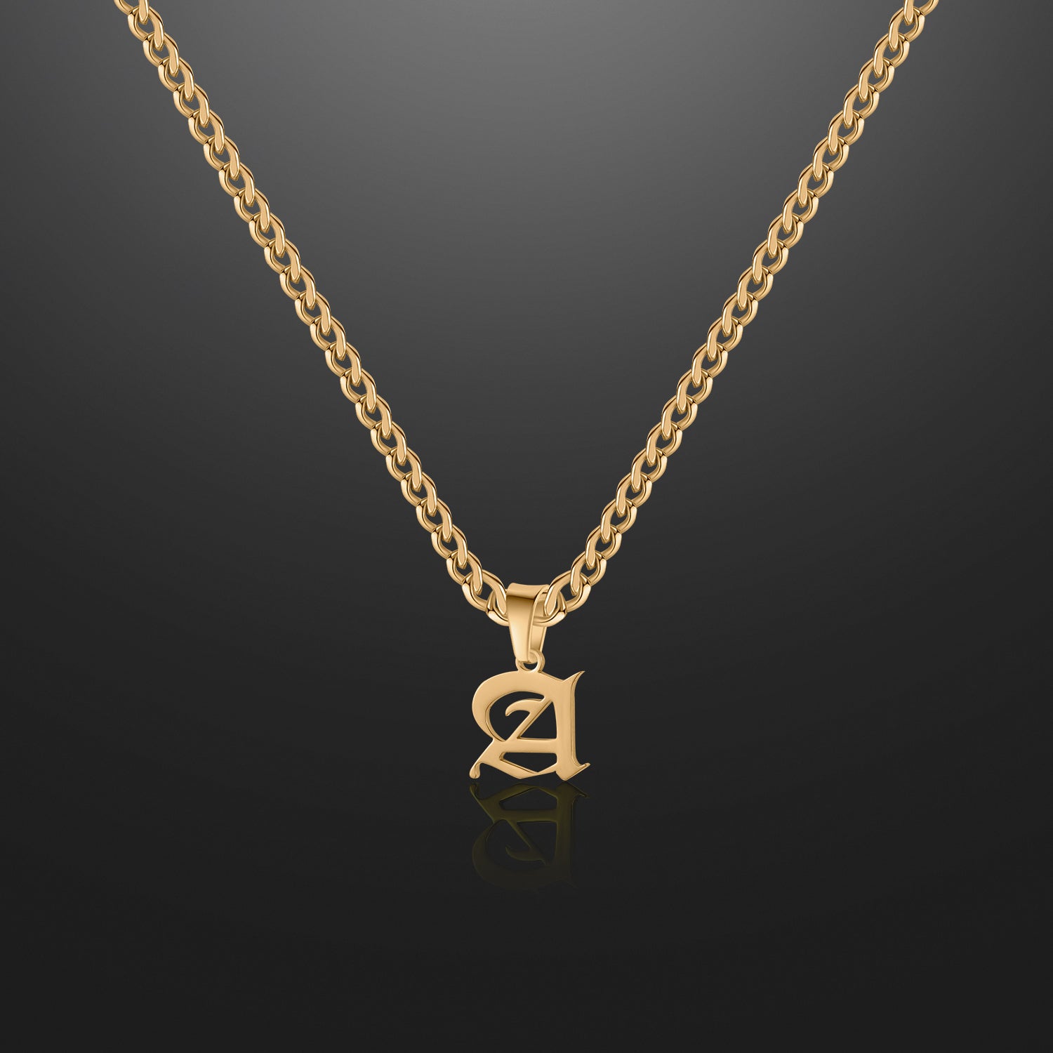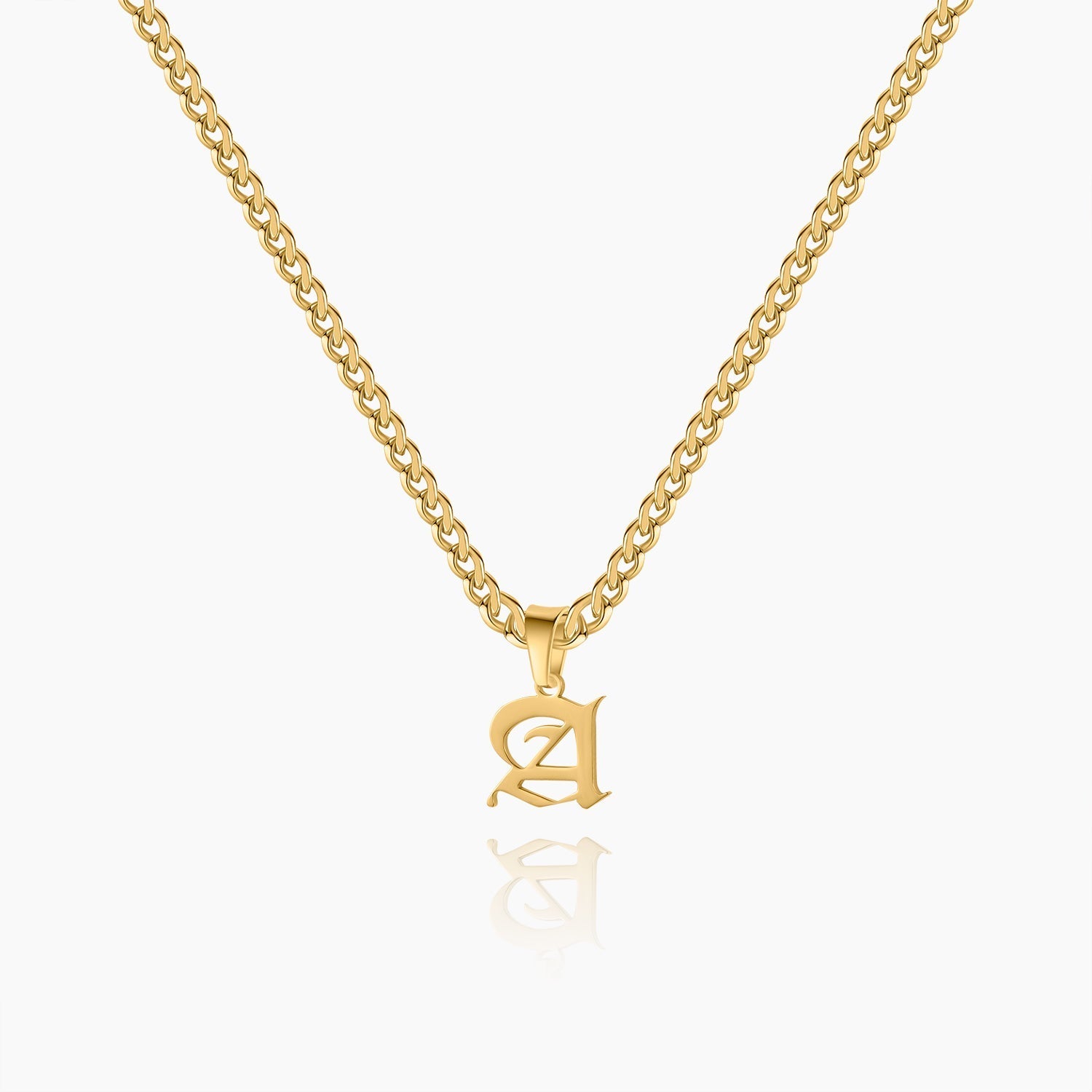 Kids Gothic Letter Necklace w/ Cuban Chain