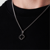 This silver necklace features our iconic 4-leaf clover pendant, framed with intricate filigree edges and a deep black inlay. Designed to replicate the depth and richness of natural onyx, its surface is sealed with a durable, scratch and fade-resistant finish.