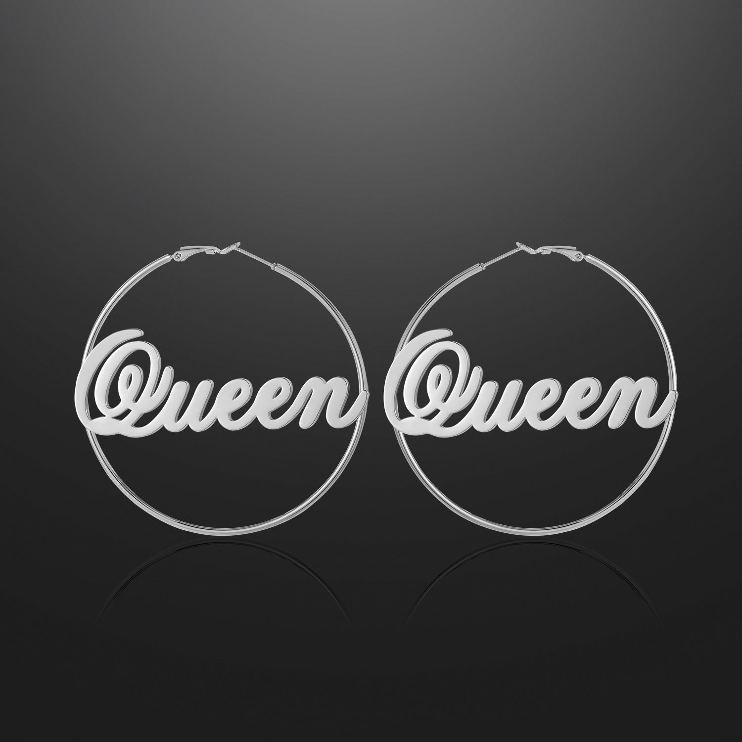 Personalize these hoop earrings with your name, the name of a loved one, or a special word. Crafted from 18K gold and silver plating, this piece is made to last. The bigger the hoops, the bigger the statement!