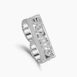 Make a statement with our Two Finger Name Ring! Personalize this ring with a name or meaningful word! Crafted from Sterling Silver, this piece is made to last.