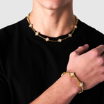 This necklace features a series of our iconic 4-leaf clover motifs, each framed in 18K gold and set with a pearlescent white inlay. Designed to replicate the depth and richness of natural mother-of-pearl, each clover is sealed with a durable, scratch and fade-resistant finish. Beveled links offer a seamless fit along the neckline, while our snap-proof clasp ensures this piece is truly CRAFTD to last.