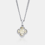 This silver necklace features our iconic 4-leaf clover pendant, framed with intricate filigree edges and a pearlescent white inlay. Designed to replicate the depth and richness of natural mother-of-pearl, its surface is sealed with a durable, scratch and fade-resistant finish.